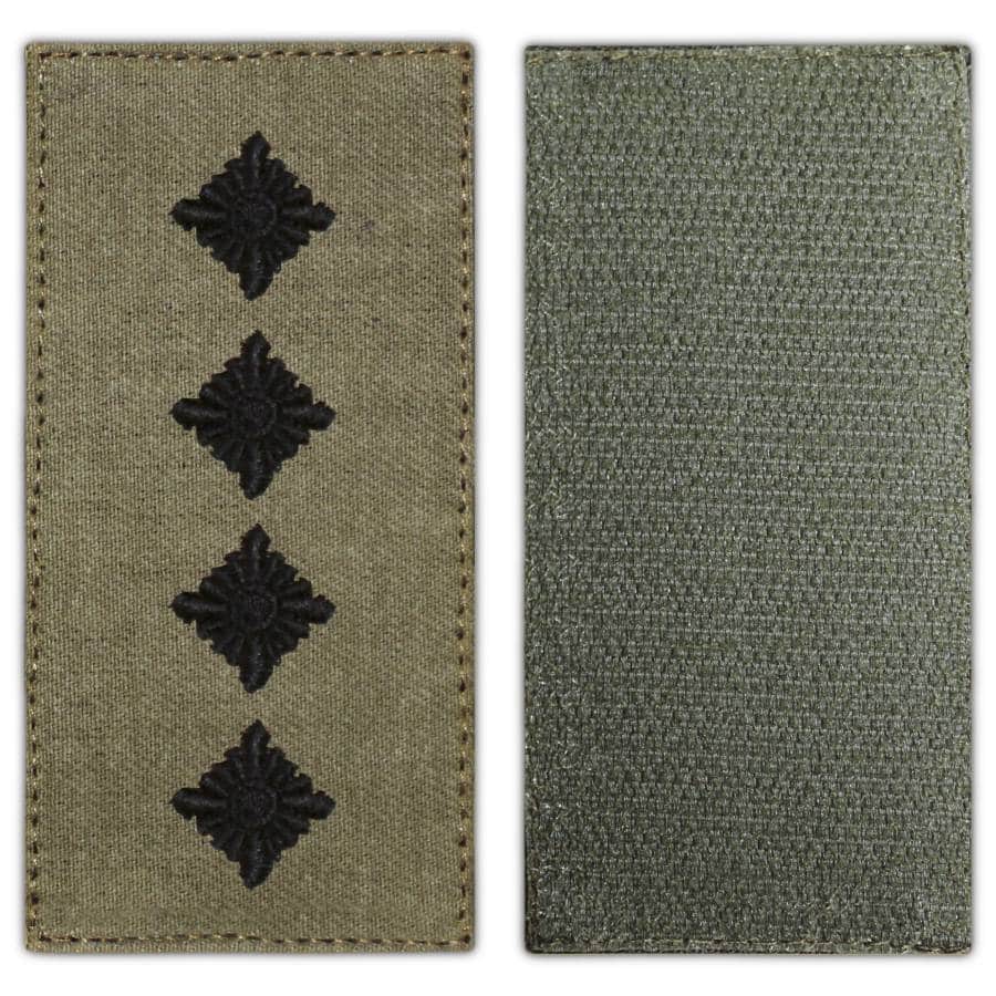 • Знаки розрізнення: вишиті чорною ниткою відповідно до військового звання військовослужбовця ЗСУ.